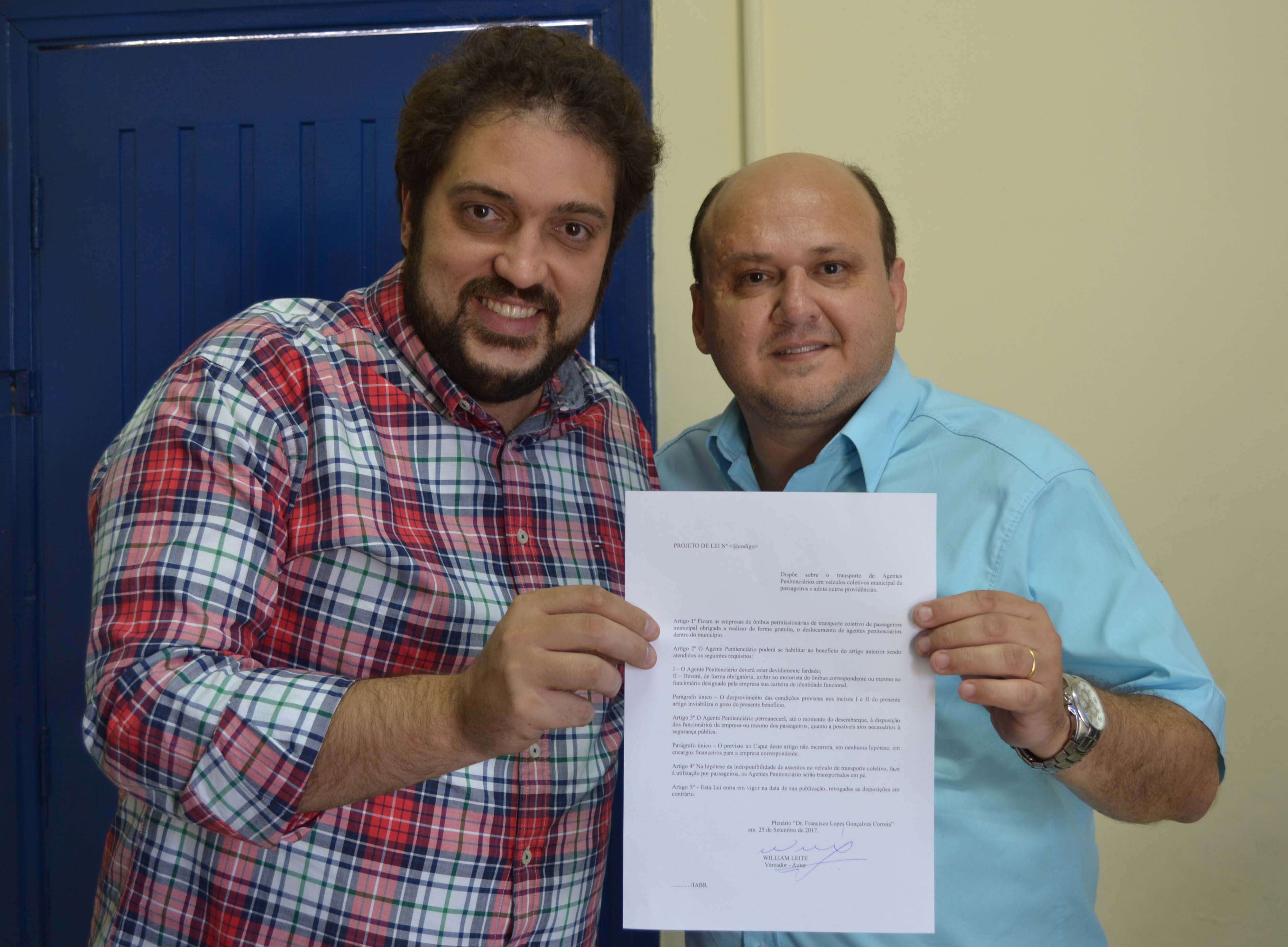 Por solicitação do sindppesp-SP, o vereador da Câmara de Presidente Prudente, William Leite (PPS), apresentou um projeto de lei que dispõe sobre o transporte coletivo gratuito para os agentes de segurança penitenciária (ASP) em ônibus municipais.
