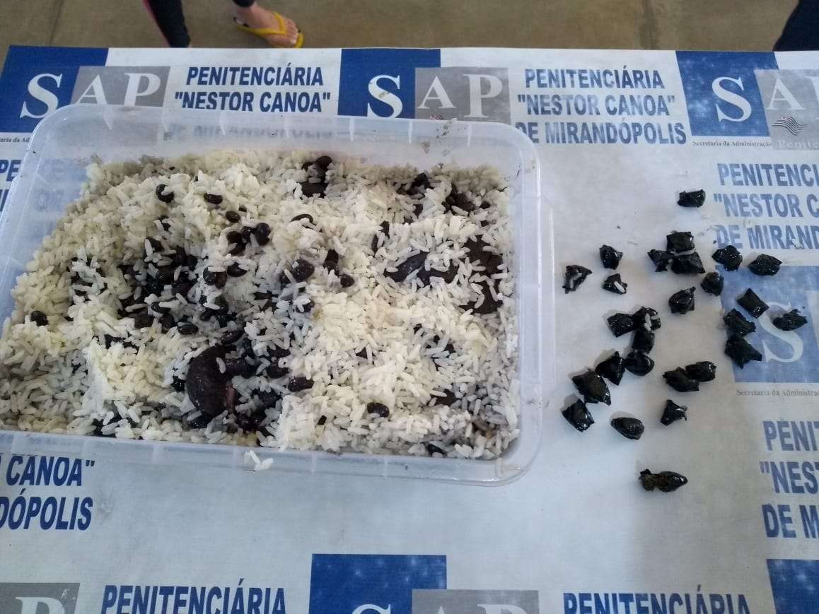 Na Penitenciária Nestor Canoa de Mirandópolis, por volta das 10h20, durante a realização de revista dos alimentos destinados aos reclusos, foram apreendidos 1.020 invólucros que estavam misturados em meio a arroz e feijão preto em uma vasilha plástica. Após a abertura dos invólucros, constatou-se que se tratava de maconha. Na ocasião, a visitante assumiu a autoria do fato e disse ter ciência do conteúdo da vasilha.