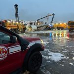 As equipes continuam no combate, a situação está bem controlada e vão iniciar a retirada de parte da carga.