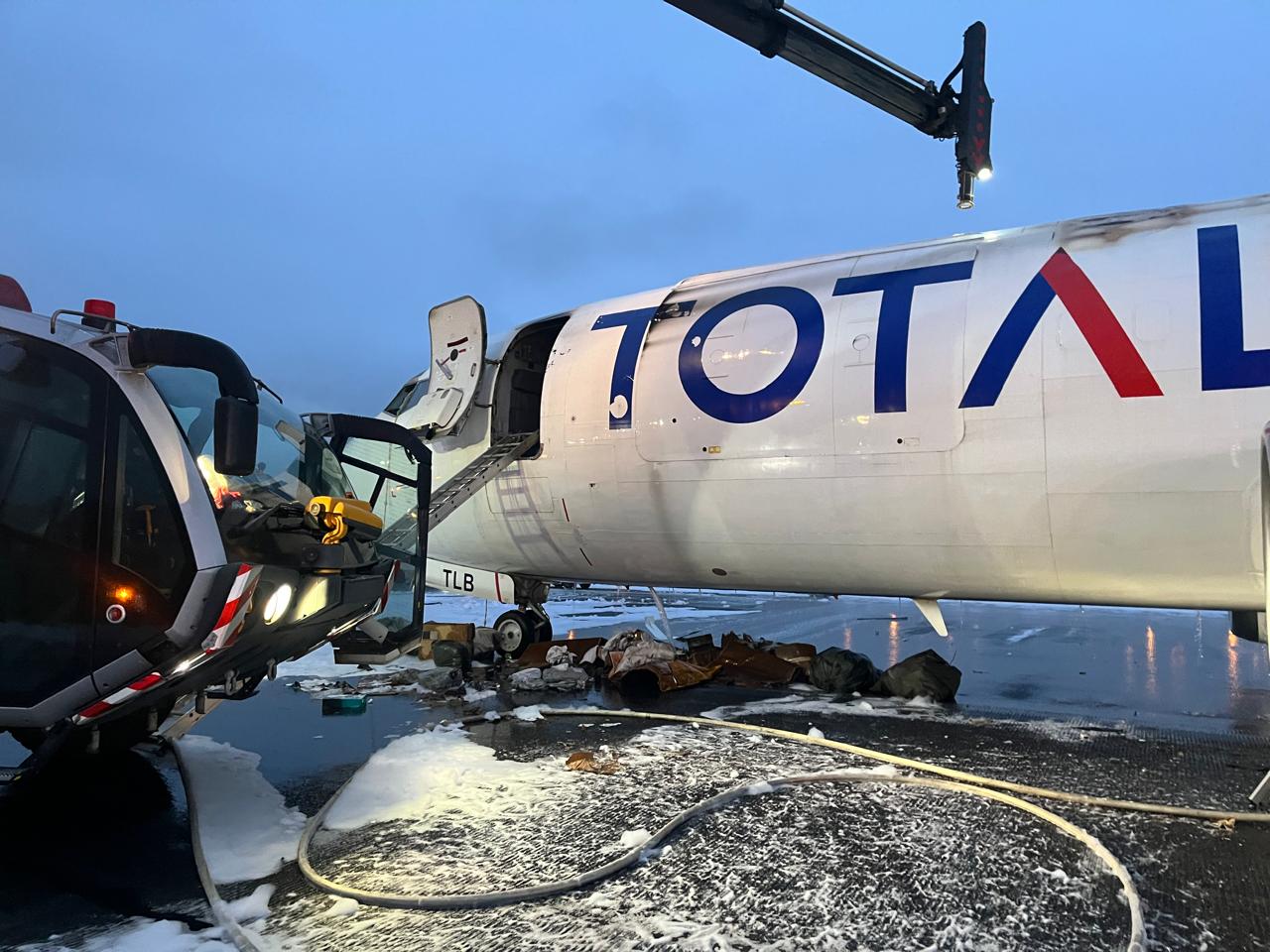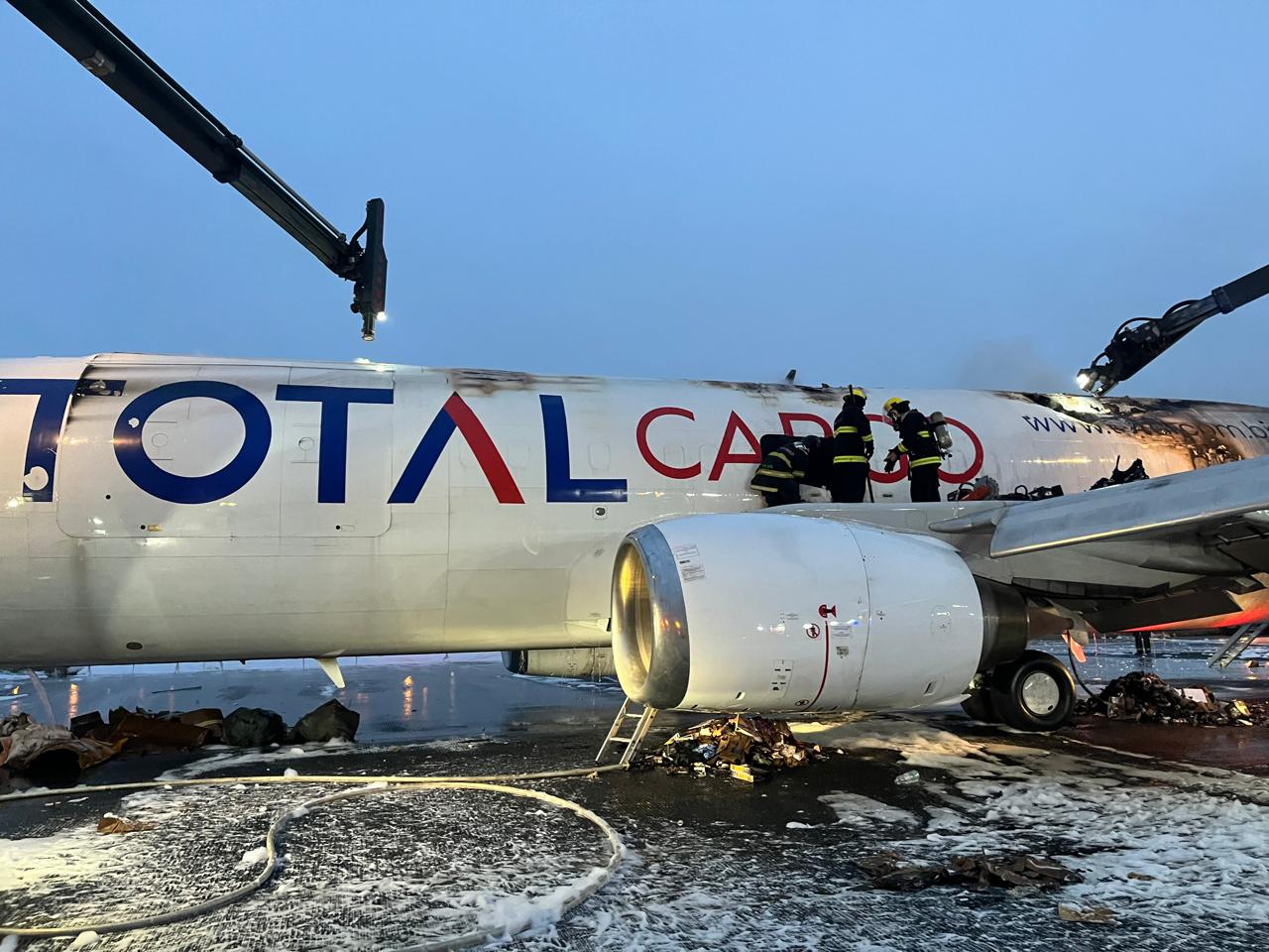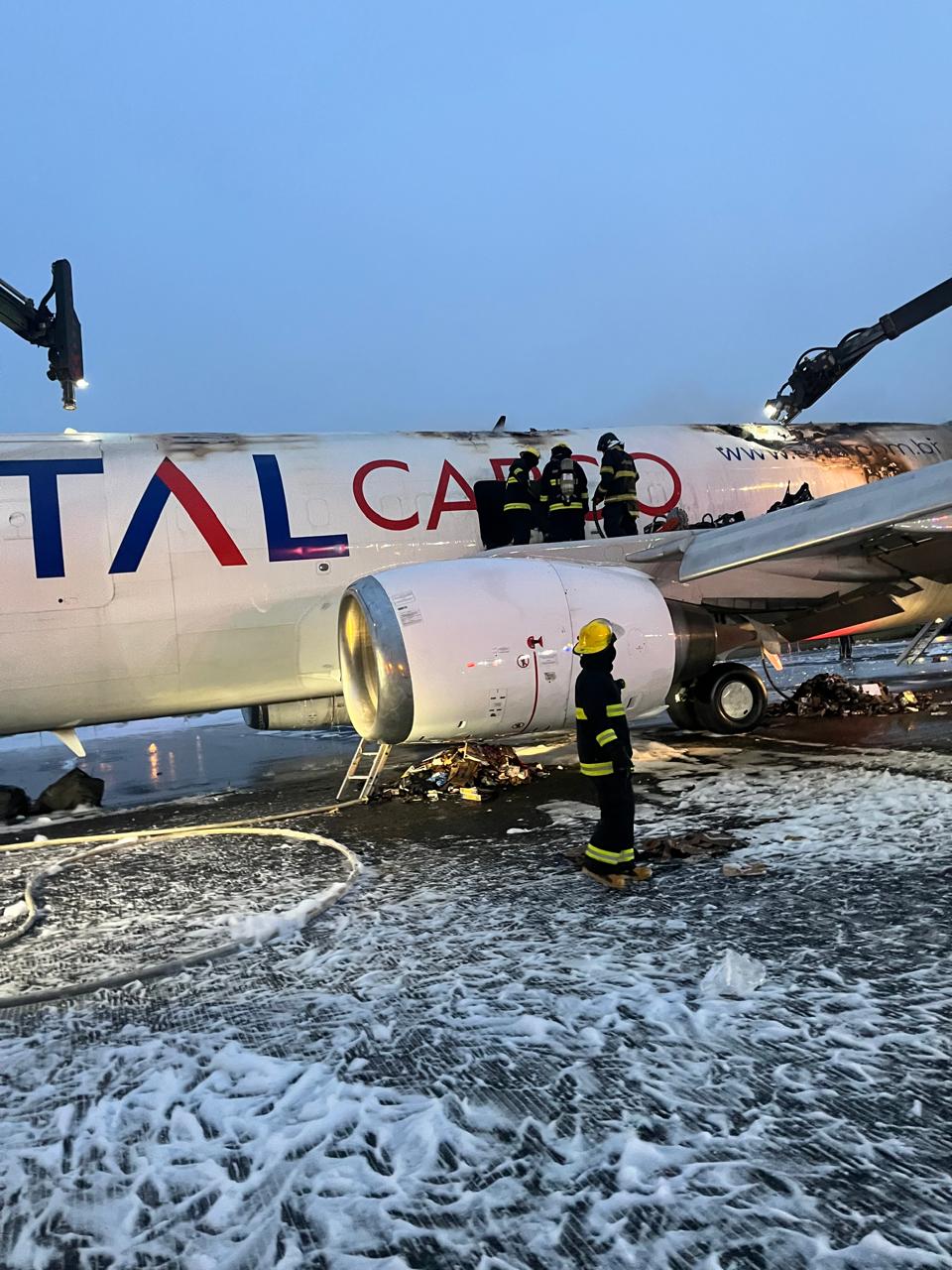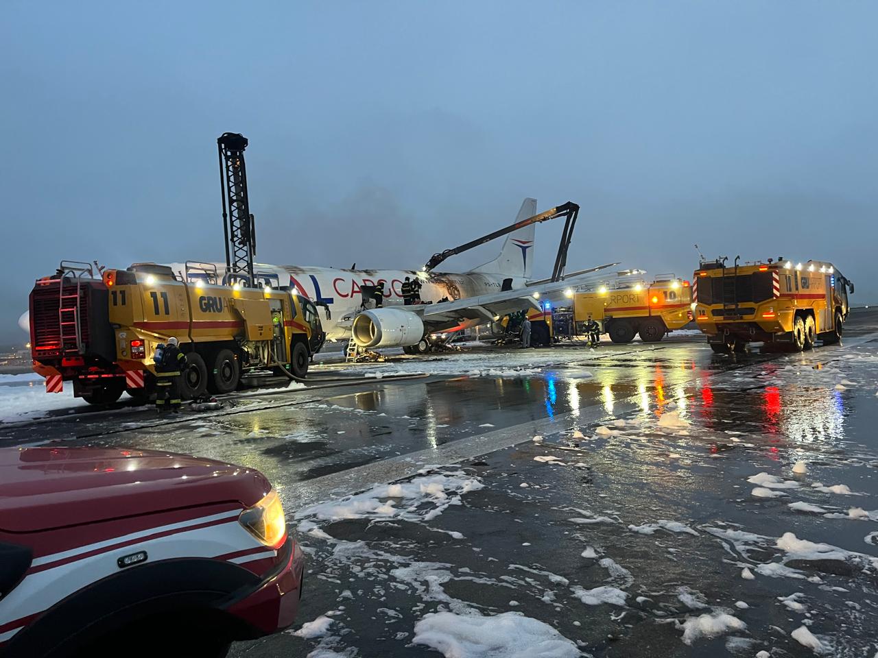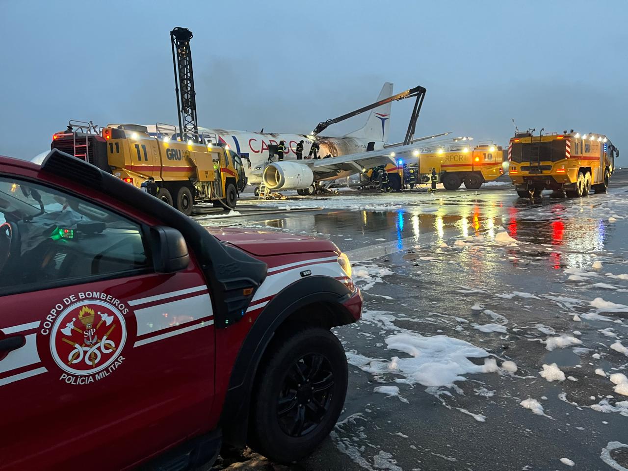 Um avião cargueiro da empresa Total Cargo, fez um pouso de emergência no Aeroporto Internacional de São Paulo, em Guarulhos, após pegar fogo, por volta das 2h deste sábado. Não há registro de vítimas.