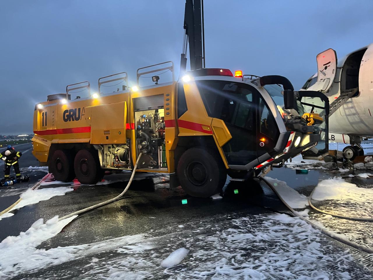 Equipes do CB e GRU AIRPORT no combate.