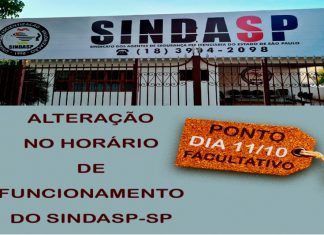 Alteração no horário de funcionamento do sindppesp-SP, por conta do dia de nossa senhora...