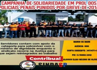 O sindppesp entrou na campanha de arrecadação de recursos financeiros como forma de auxiliar os policiais penais demitidos pela Secretaria de Administração Penitenciária (SAP) por terem participado da greve da categoria em 2014.