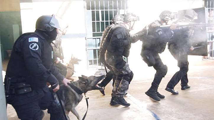 Atualmente, o CDP trabalha com três cachorros, um deles com dupla função: intervenção de presos e farejamento de drogas.