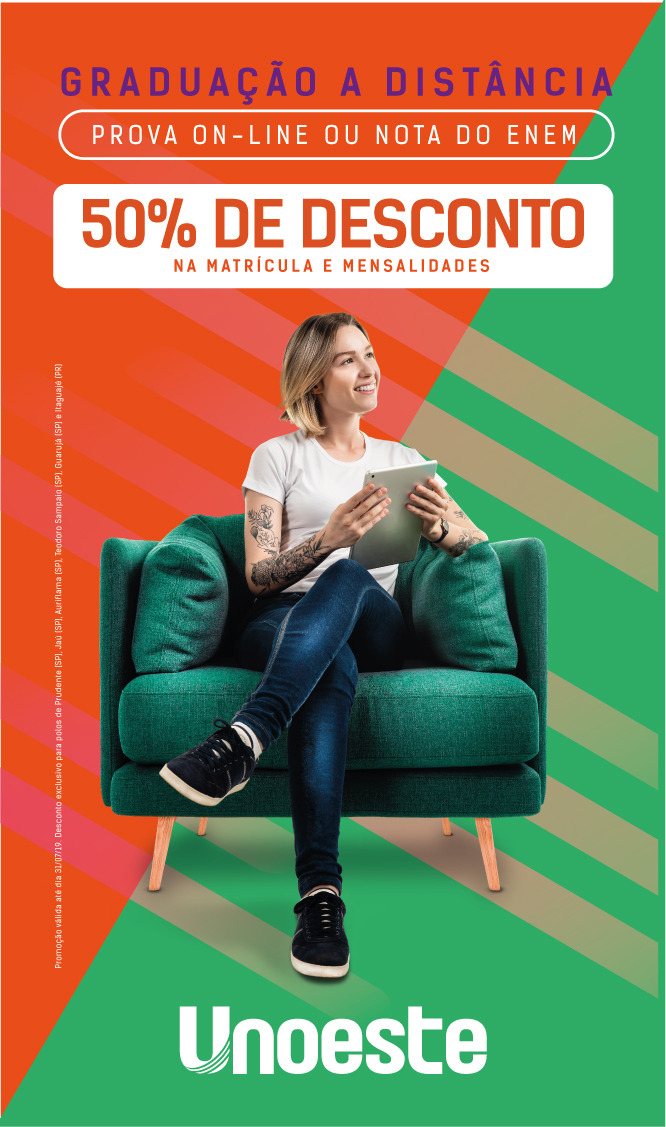 Especificamente no caso dos cursos a distância, a parceria concede 50% para quem realizar um cadastro até o dia 31/7 e garantir a bolsa para início das aulas em 1º de agosto de 2019. O desconto será liberado em todas matriculas e mensalidades. â–º Clique aqui e garanta sua bolsa.