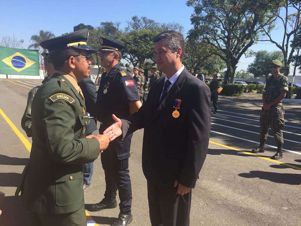 O chefe da Instrução do Tiro de Guerra 02-081, subtenente Assuires da Silva Filho, entregou a condecoração aos homenageados.
