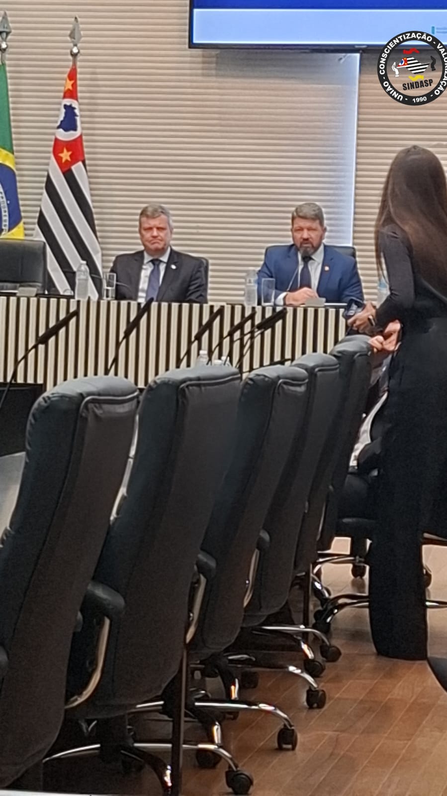 O Diretor Jurídico do sindppesp, ao lado de outros diretores, participaram de importante reunião na Assembleia Legislativa de São Paulo, onde foram discutidos assuntos envolvendo o sistema penitenciário de Estado de São Paulo e contou com a presença do Secretário de Administração Penitenciária, Marcello Streifinger.