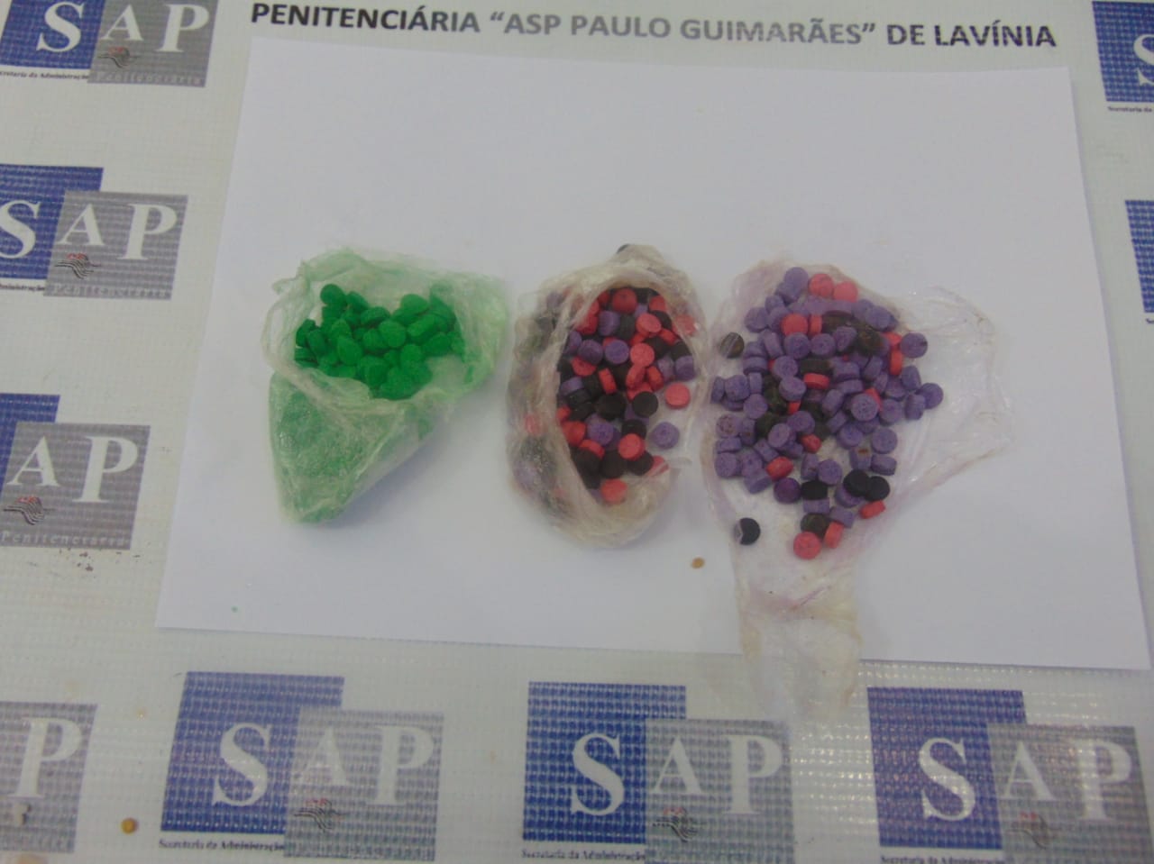 Na Penitenciária “Asp Paulo Guimarães” conhecida como P3 de Lavínia, foram registradas duas ocorrências em 24/02. No primeiro flagrante, uma visitante, companheira do sentenciado, tentou entrar na unidade com uma vasilha de plástico com 3 invólucros cheios de droga sintética Ecstasy, somando o total de 300 unidades em formato de comprimidos. A visitante foi questionada sobre o fato e disse que estava trazendo os invólucros a pedido de outra pessoa. Depois, servidoras flagraram uma visitante tentando levar ao filho uma vasilha de plástico de comida com 2 dois invólucros contendo duas placas de aparelho celular. A visitante foi questionada sobre o fato, a qual relatou em depoimento que estava trazendo os produtos a pedido de outra pessoa.
