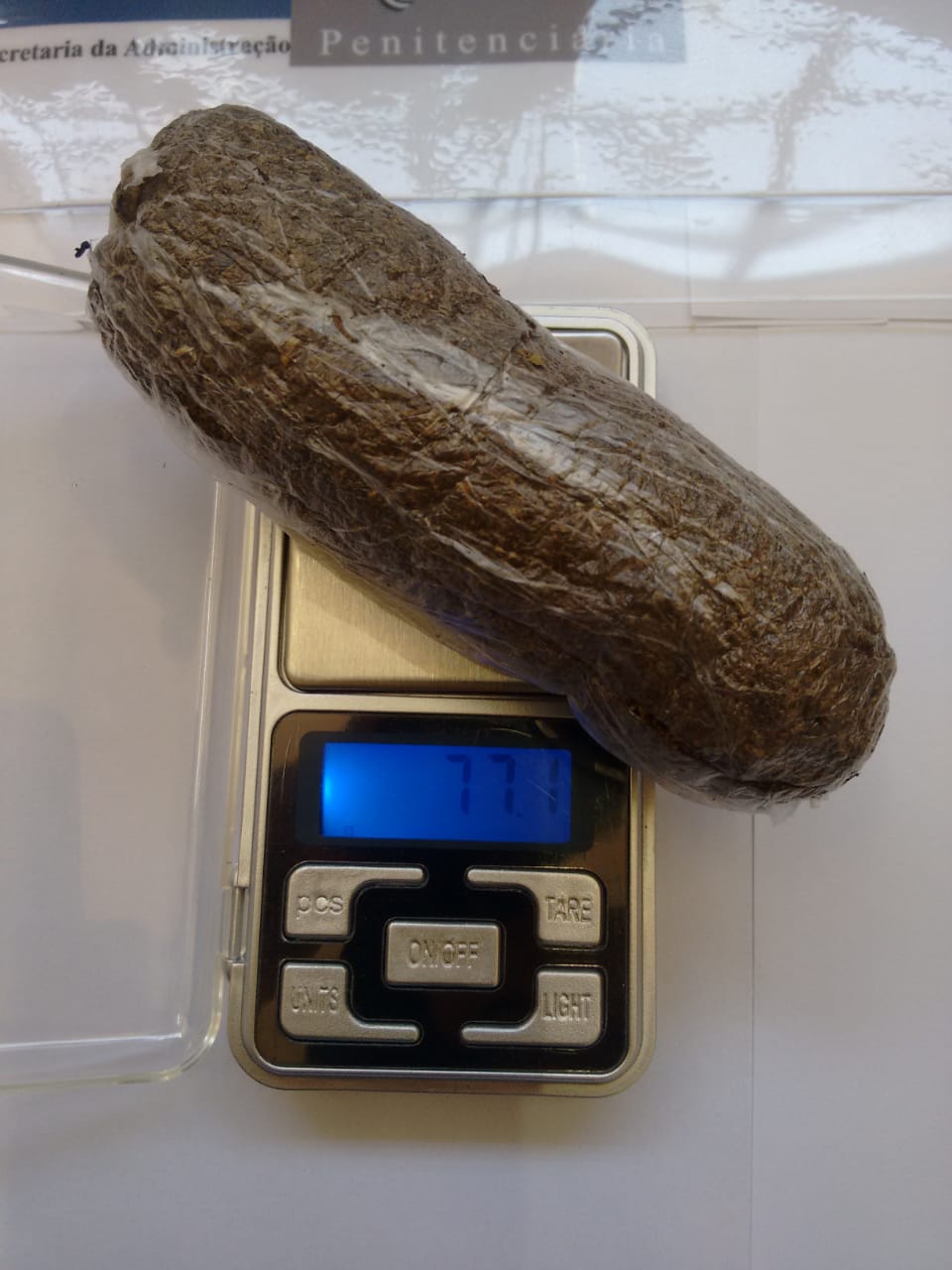 Uma mulher foi flagrada tentando entrar com uma porção de maconha escondida em sua vagina, na Penitenciária de Bernardino de Campos, por volta das 9h de sábado, 23/02. A droga, pesando 77,1 gramas, foi descoberta durante procedimento de revista pelo escâner corporal. A visitante foi levada para uma sala reservada, onde, na presença de agentes femininas, retirou espontaneamente o entorpecente.