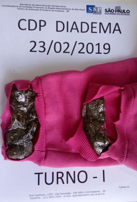 Os agentes de segurança do Centro de Detenção Provisória de Mauá apreenderam dois invólucros de maconha com uma visitante da unidade, no último domingo, 24/02. O entorpecente estava escondido no cós do sutiã da mulher e foi visto através das imagens do escâner corporal.