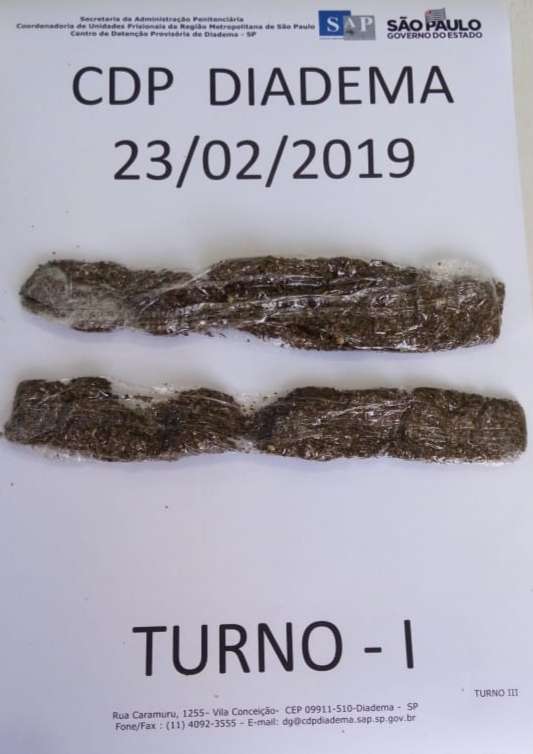 Durante o dia 23/02, no Centro de Detenção Provisória de Diadema, quatro visitantes foram impedidas de entrar na unidade após terem sido flagradas com entorpecentes. Em três situações as mulheres levavam maconha escondida em suas roupas (na barra da calça ou no top). O quarto flagrante do dia apreendeu 40 comprimidos análogos ao ecstasy e uma folha de papel, supostamente sendo entorpecente análogo ao LSD. As substâncias estavam todas escondidas na roupa íntima (top) da mulher.