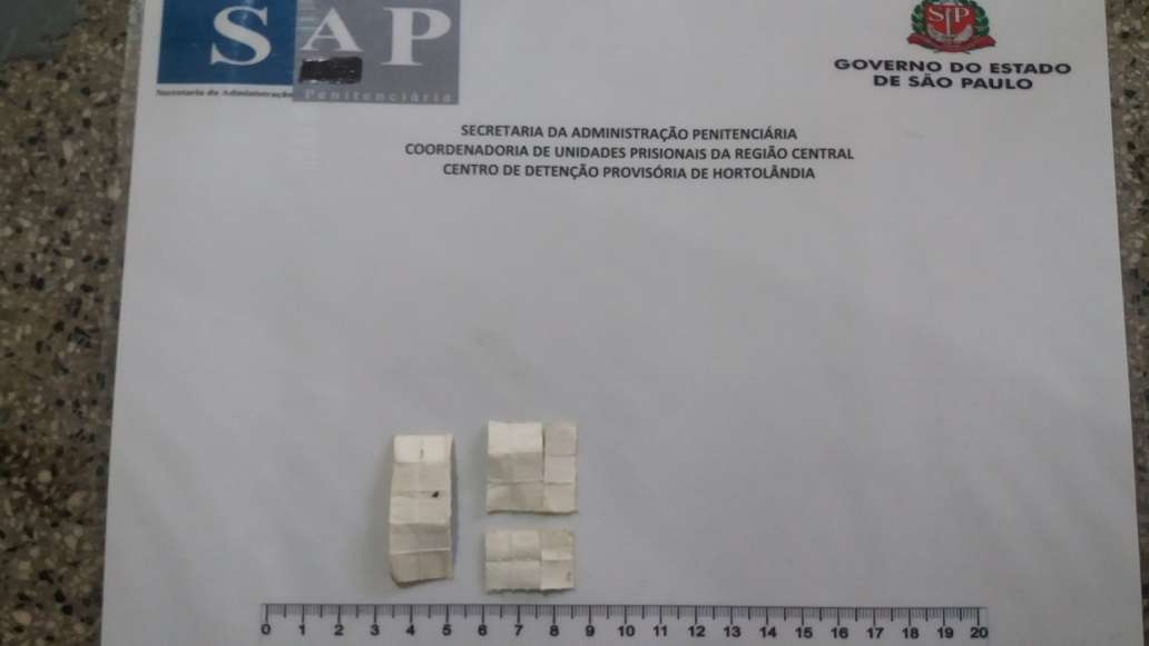 No dia 23/02, a companheira de um detento foi surpreendida com 25 adesivos de LSD na costura da sacola, durante o procedimento de revista de alimentos, no Centro de Detenção Provisória (CDP) de Hortolândia. Segundo informações da unidade prisionais, além da droga, agentes encontraram também bilhetes. Diante disso, a mulher foi encaminhada ao plantão policial e permanece à disposição da Justiça. O preso que seria visitado foi isolado, preventivamente para procedimento disciplinar.