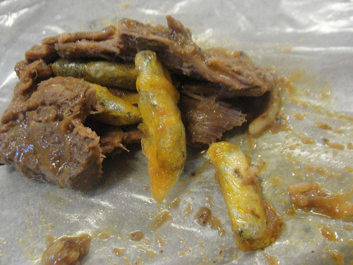 A Penitenciária I de Serra Azul registrou um flagrante ousado de visitante tentando entrar com droga na unidade prisional, no domingo, 24/02, por volta das 9h. A mulher usou “bifes a rolê” como forma de camuflar o entorpecente. Ao todo, os agentes de segurança apreenderam 11 porções de maconha em pedaços de carne, durante inspeção em vasilha de alimento. Os bifes foram costurados com linha preta. A mesma visitante também tentou entrar na unidade com anotações do tráfico e cocaína alojada em um par de tênis infantil. Ela foi encaminhada à delegacia para registro de boletim de ocorrência.