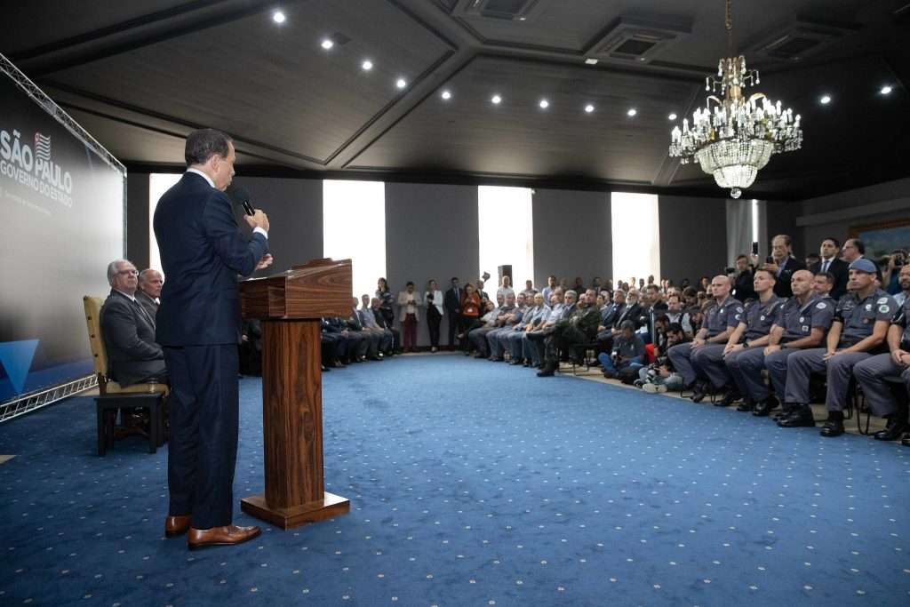 “O Governo de São Paulo estará sempre ao lado daqueles policiais no cumprimento do seu dever e seguindo o protocolo que estarão defendendo as pessoas de bem no nosso estado”, disse Doria. A cerimônia aconteceu na sede do Palácio dos Bandeirantes. Criado pela atual gestão da Secretaria da Segurança Pública, o programa “Policial Nota 10” tem como objetivo reconhecer e estimular o bom trabalho policial em todo o Estado.