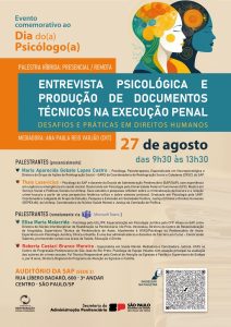 No próximo dia 27, das 9h30 às 13h30, será realizado um evento comemorativo ao dia do psicólogo (a), com uma palestra hibrida/ presencial/ remota.