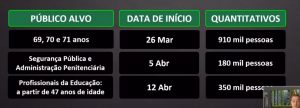 O Fórum vai dar publicidade ao calendário de vacinação com subdivisões por idade ou por função assim que ele for divulgado pelo governo do Estado. Confira abaixo o cronograma básico apresentado na coletiva de imprensa desta quarta-feira.
