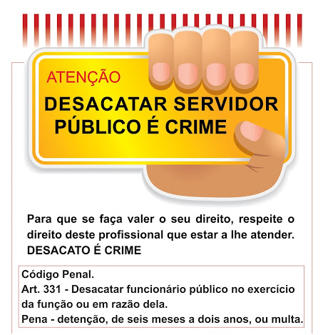 Art. 331. Desacatar funcionário público no exercício da função ou em razão dela: Pena – detenção, de seis meses a dois anos, ou multa.