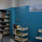 O espaço conta com estantes, carrinhos de livros, mesas e cadeiras para discussões qualificadas sobre as obras literárias durante mediações.