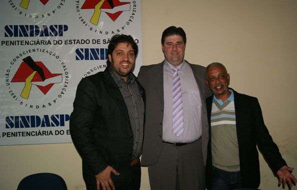 Presidente do sindppesp-SP, Danniel Grandolfo, o novo diretor regional do Emprego, Paulo Alexandre Lopes, e Danilo Pereira da Força Sindical