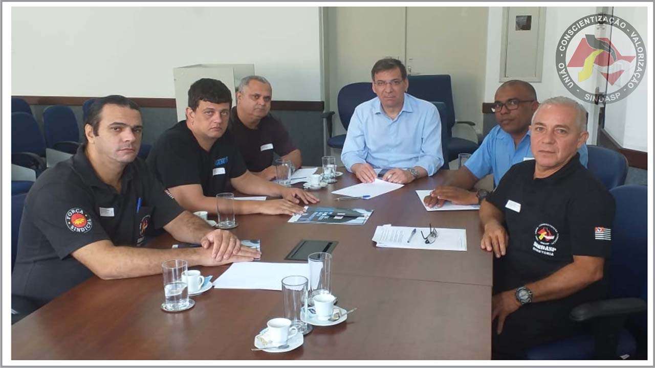 O secretário de Estado da Administração Penitenciária, Nivaldo Cesar Restivo, recebeu os diretores do sindppesp-SP e Sindcop na manhã desta terça-feira (30) para tratar da negociação da pauta unificada 2019. O sindppesp-SP foi representado pelos diretores Elias Ramos, José Carlos Ferreira do Nascimento e Tony Jefferson Nigre Soares. O Sindcop foi representado pelo presidente Gilson Pimentel Barreto e pelo diretor Carlos Eduardo Piotto.