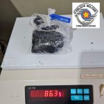 Questionados, ambos informaram estar naquela localidade a fim de comprar entorpecentes e durante diligências nos locais percorridos pelos indivíduos, inclusive nas proximidades de um muro transposto por eles, os militares localizaram uma blusa, anteriormente vista com um deles e localizaram envolvidos nela, 02 (duas) porções de maconha, somando aproximadamente 0,86 Kg da droga.
