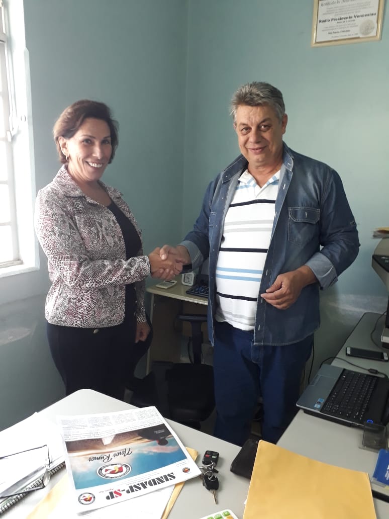 A parceria foi firmada na sede regional de Venceslau com a presença do presidente do sindppesp-SP, Valdir Branquinho, o Diretor Administrativo Regional, Ivan Vicentini  e representante da Universidade Brasil, Maria Antonieta.