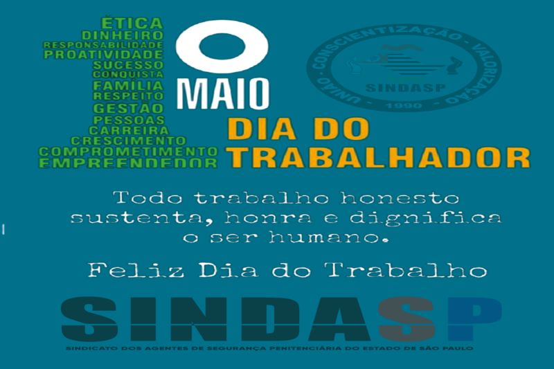 Os diretores da Executiva, Regionais e delegados do sindppesp-SP parabenizam a todos os servidores do sistema prisional pelo dia 1º de maio, Dia do Trabalho. Obrigado a cada um de vocês por sua contribuição na construção de uma categoria mais forte para exigir os seus direitos. Parabéns a todos e obrigado por acreditarem em nosso trabalho.