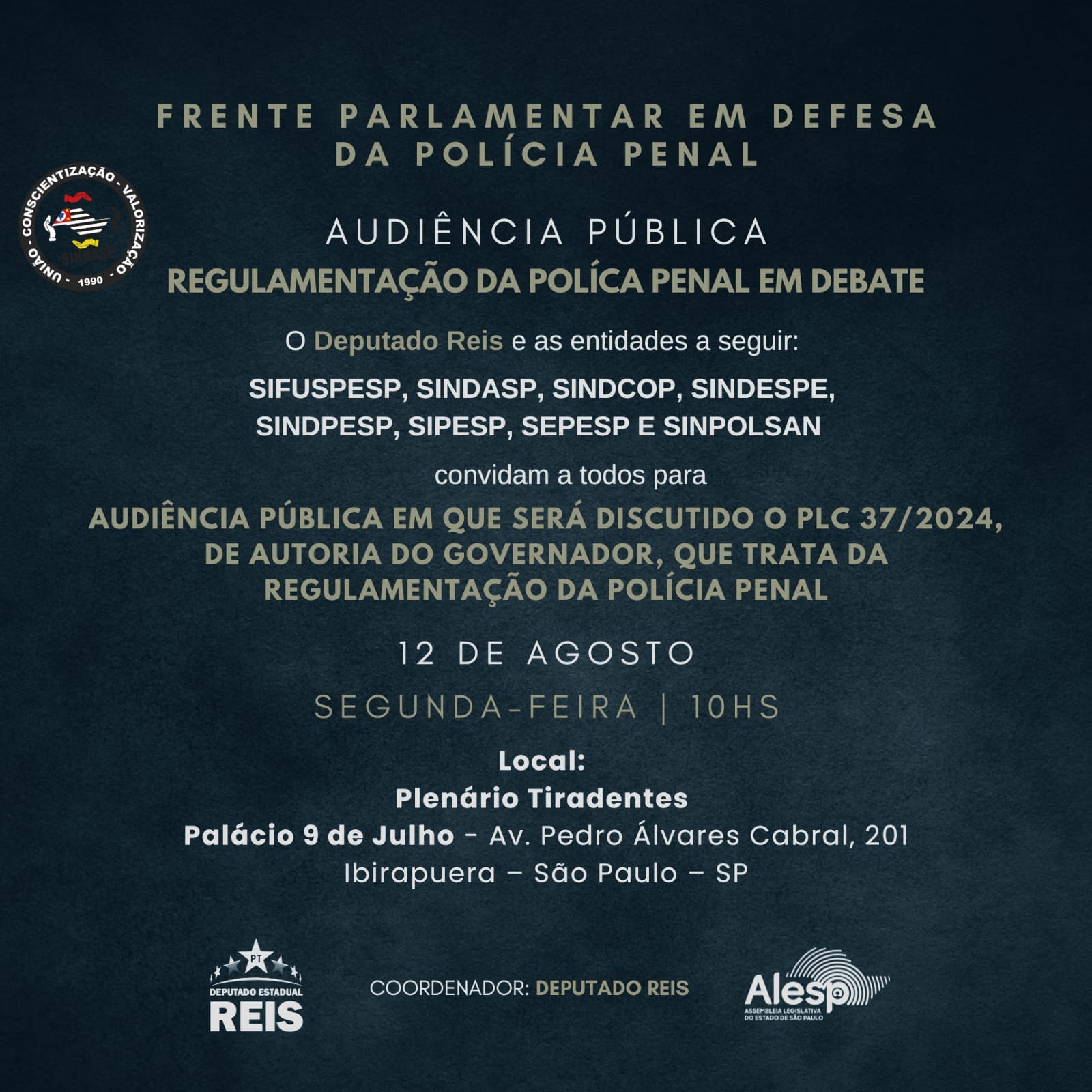 A frente Parlamentar em defesa da Polícia Penal, cuja regulamentação estará em debate e a presença dos maiores interessados é de fundamental importância.