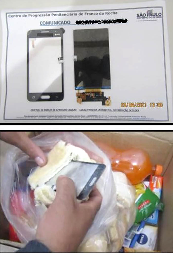 Já no Centro de Progressão Penitenciária (CPP) de Franco da Rocha, a apreensão foi feita por meio de correspondência no dia 29/08/2021, último domingo. A encomenda, encaminhado pela mãe de um sentenciado, continha um display de aparelho celular, camuflado ao pão de forma.